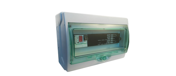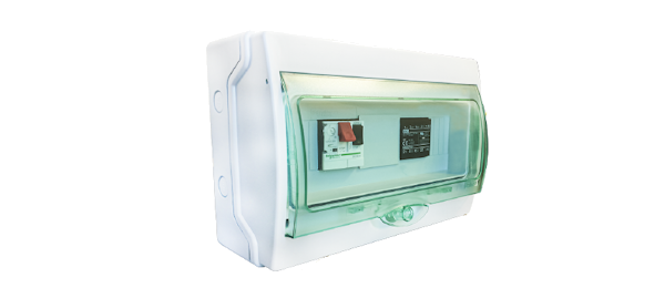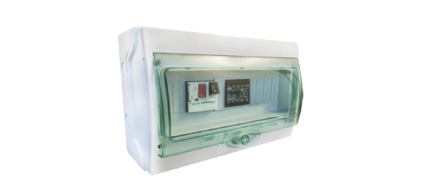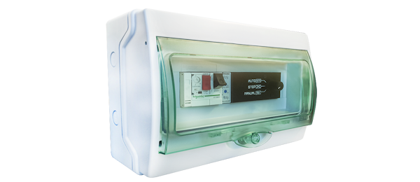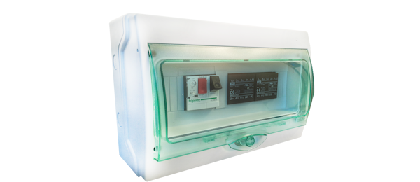 Constituído por disjuntor motor e placa de controlo, permite a ativação de turbinas trifásicas (400VAC) e turbinas monofásicas (230VAC).