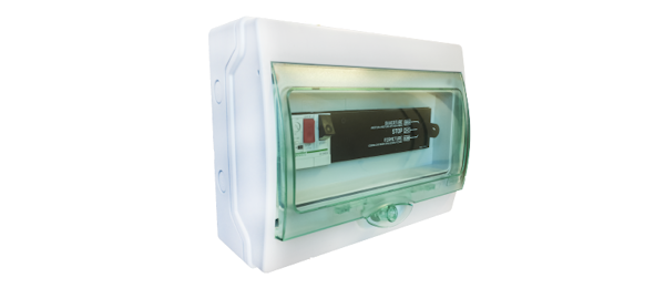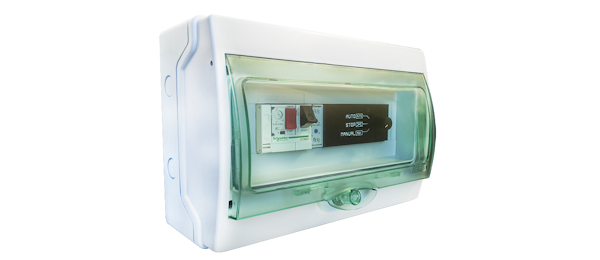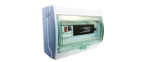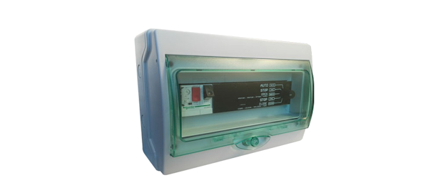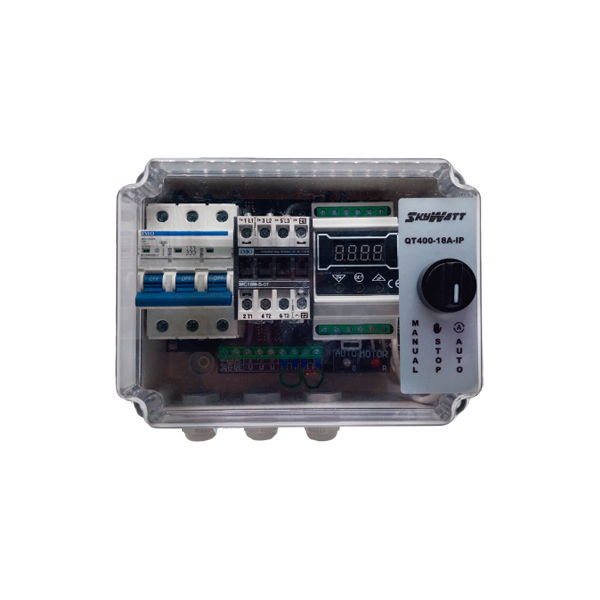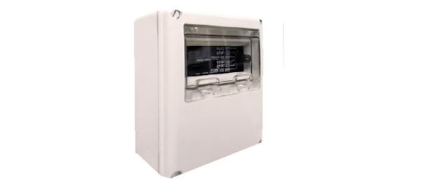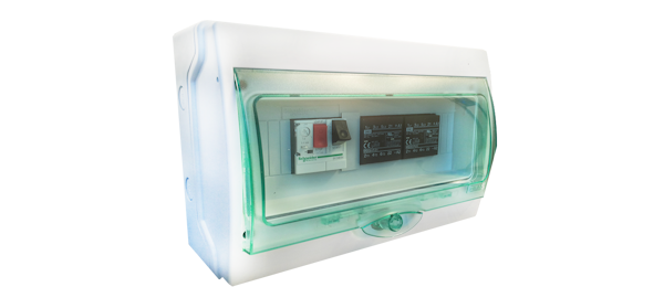 Constituído por disjuntor motor e placa de controlo, permite a ativação de turbinas trifásicas (400VAC) e turbinas monofásicas (230VAC).